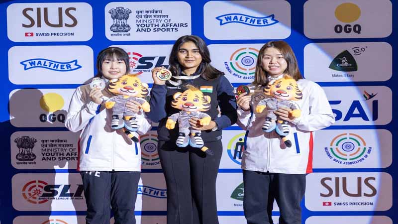 New Delhi: Former mixed team world champion Esha Singh struck a second career Asian Championship gold, winning the 10m air pistol women’s event with a score of 239.8 here at the Dr. Karni Singh Shooting ranges on Wednesday (Feb 04, 2026), day one of competitions of the Asian Rifle/Pistol Championship New Delhi 2026. The Hyderabad shooter who had won the event two years back as well in Jakarta, lay seventh after the first series of five shots before mounting a strong climb up the leaderboard and taking a decisive lead after the 19th shot of the 24-shot final. A couple of Chinese Taipei shooters, Cheng Yen-Ching and Yu Ai-Wen followed the Indian Olympian to the podium, winning silver and bronze respectively.