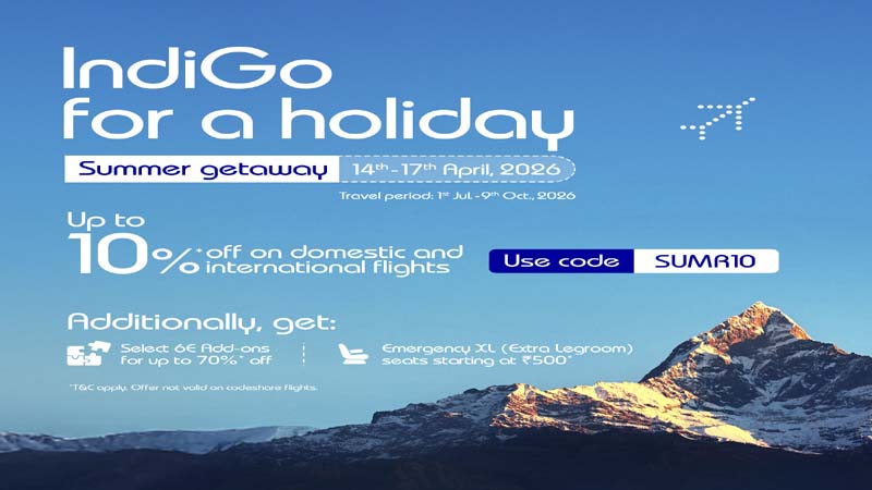 Travellers can avail of the offer using the promo code SUMR10 while making their bookings through IndiGo website (www.goindigo.in), mobile application, AI-powered assistant 6Eskai, IndiGo WhatsApp (+91 70651 45858), or through select travel partner websites and apps.
