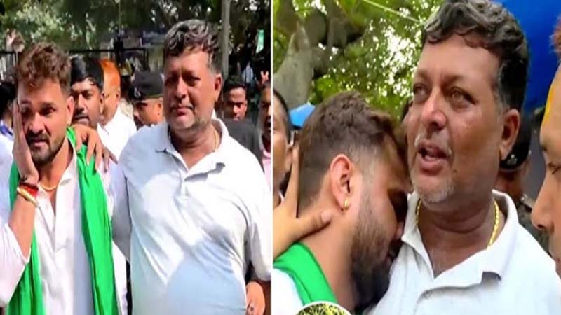Chhapra (Bihar) : Amid the high-voltage campaign for the Bihar Assembly Elections, Bhojpuri superstar and RJD (Rashtriya Janata Dal) candidate Khesari Lal Yadav filed his nomination from the Chhapra Assembly constituency on Friday. The day was marked by massive crowds and enthusiastic supporters, turning the nomination event into a festive political rally. However, the atmosphere also witnessed a deeply emotional moment when Khesari broke down upon meeting senior RJD leader Jitendra Rai.